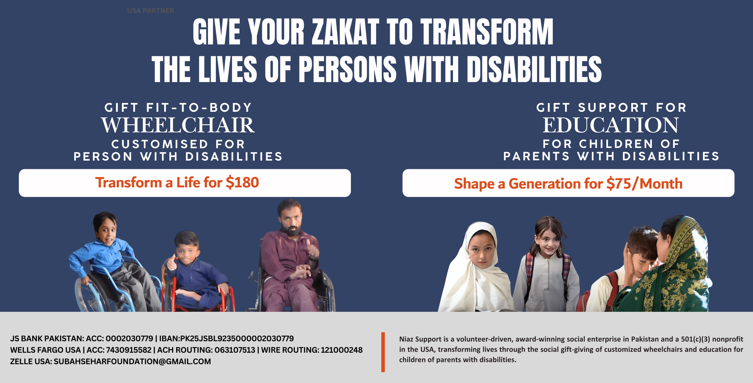 Driven social impact through education, household support, employment and increased awareness on disability challenges and needs in Pakistan.